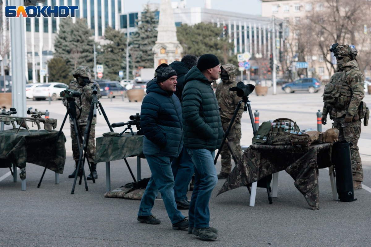 Выставку оружия и сбор гумпомощи для бойцов открыли в Краснодаре в преддверии 23 февраля