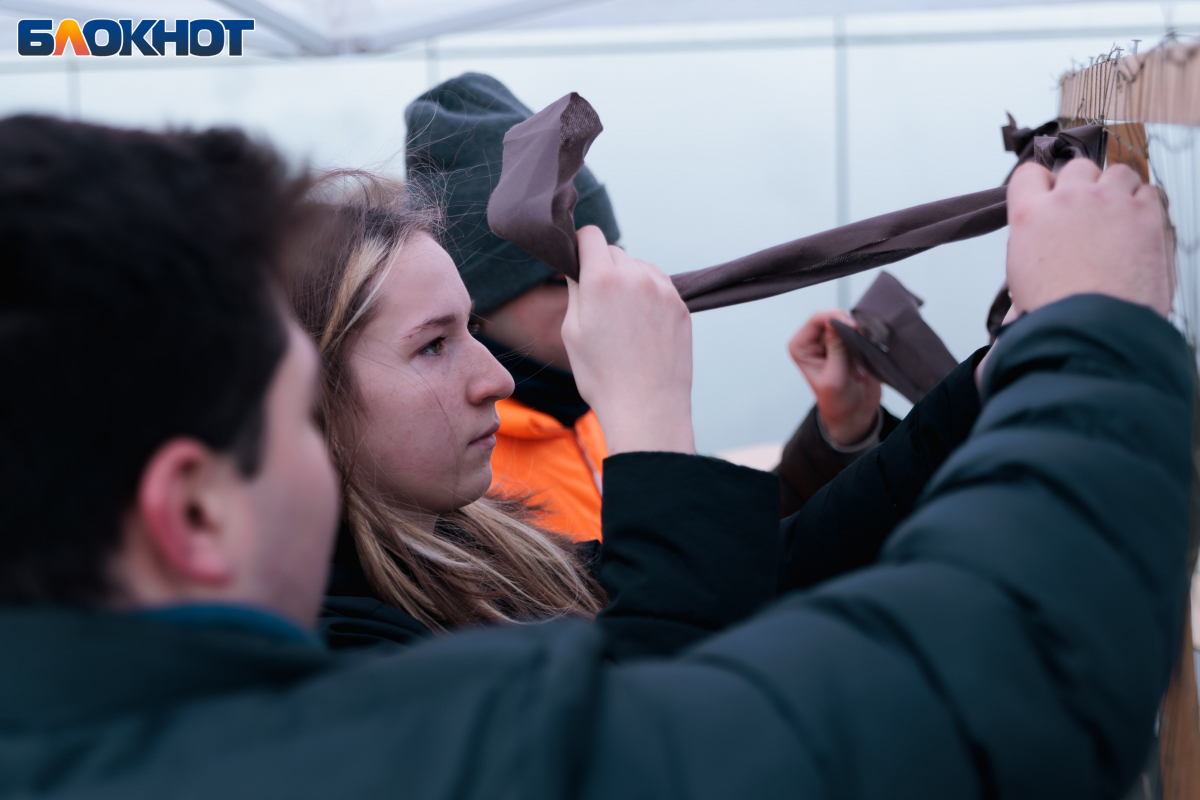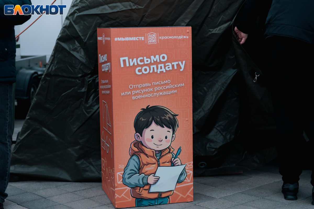 Там же краснодарцам предложили написать письма для бойцов, поздравить их с 23 февраля и передать свои тёплые пожелания и благодарности. А ещё жителям предоставили возможность попробовать себя в плетении маскировочных сетей.