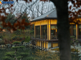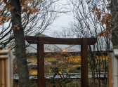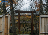 Деревья скинули листву и открыли свои изящные силуэты. Обнаженные ветви придают ландшафту некую строгость, но вместе с тем подчеркивают гармонию форм и линий, характерных для японских садов. Некоторые деревья сохраняют свою зелень, создавая контраст с остальными растениями.
