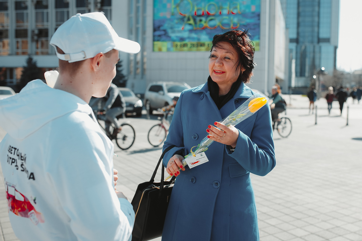 Цель акции «Цветочный Патруль» – вручить очаровательным девушкам нашего города букеты тюльпанов и создать соответствующую праздничную атмосферу.